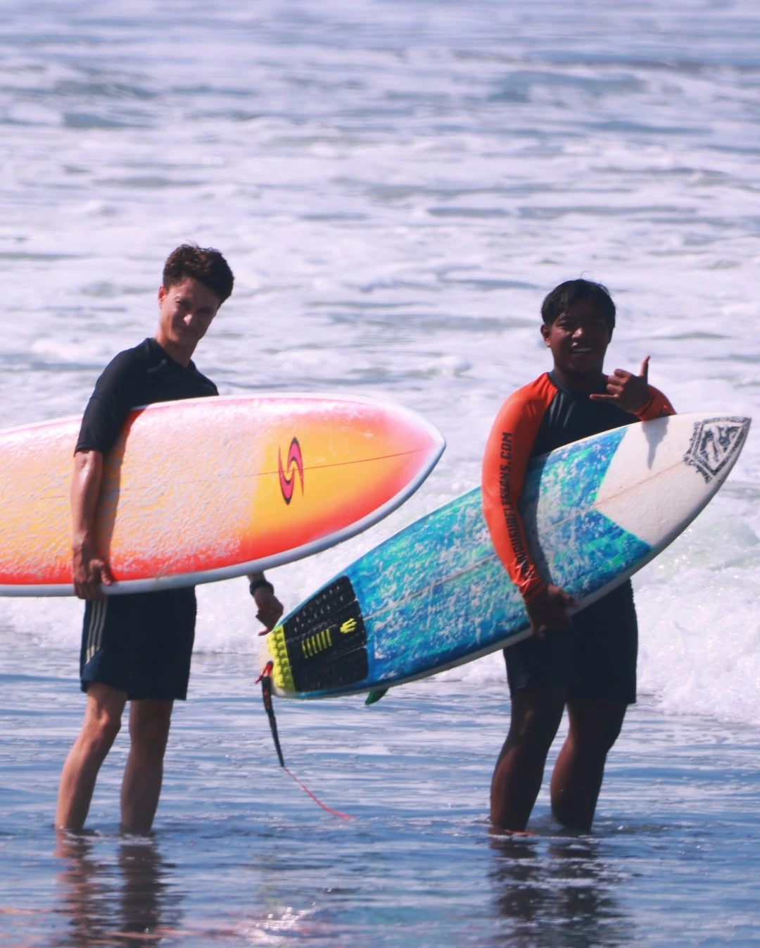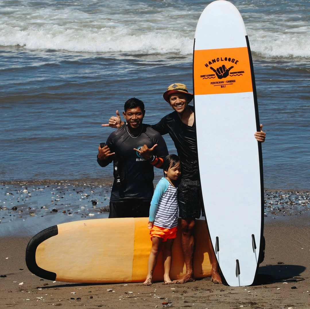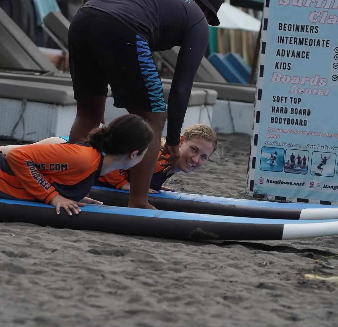 Welcome to Hangloose Surf School: Opening the Ultimate Surfing Experience in Pererenan-Canggu, Bali. Derived from the word "Hangloose," meaning "relaxed" or "calm," our mission is to help you find the ultimate surfing adventure, whether you're a beginner or seeking advanced and intensive surfing training. With personalized surf guides, and our location in the best surfing spots in Bali, join us on a transformative journey like no other. Join us at Hangloose Surf School and let your search for the perfect wave begin.